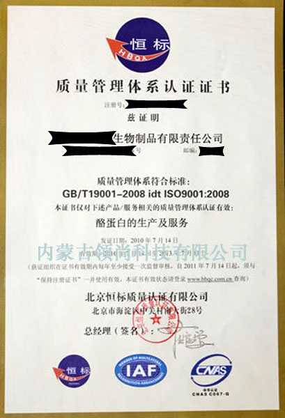 ISO9001質(zhì)量管理體系認(rèn)證證書(shū)